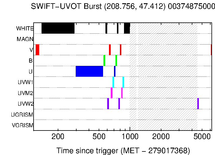 | GRB 050509B | 00118749_uvseq | 12h 36m 13.77s | +28° 59′ 03.3′′ | 5.4 | Enhanced |