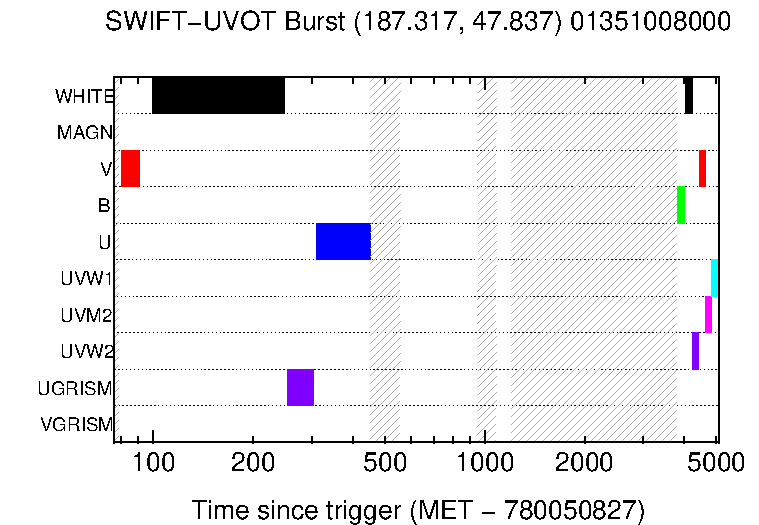 GRB 050509B | 00118749_uvseq | 12h 36m 13.77s | +28° 59′ 03.3′′ | 5.4 | Enhanced |