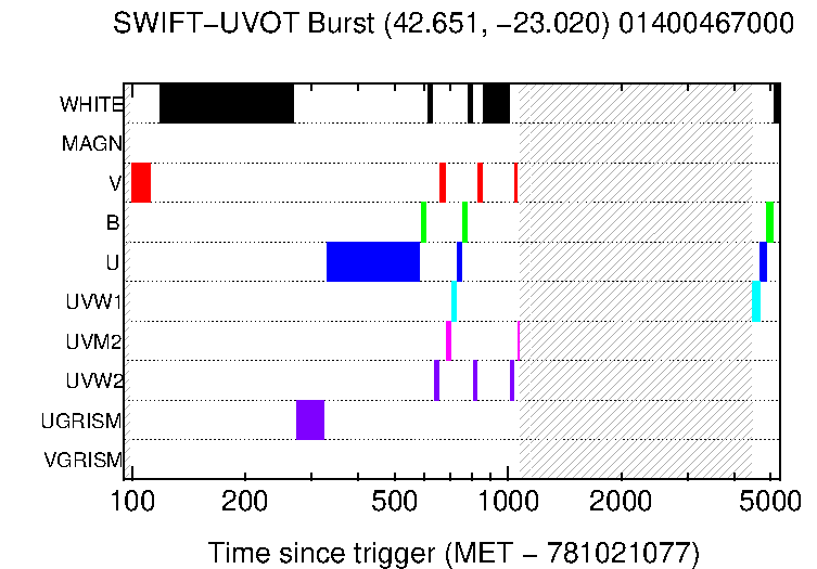 GRB 051021B | 00160672_uvseq | 08h 24m 12.24s | -45° 32′ 28.4′′ | 1.7 | Enhanced |