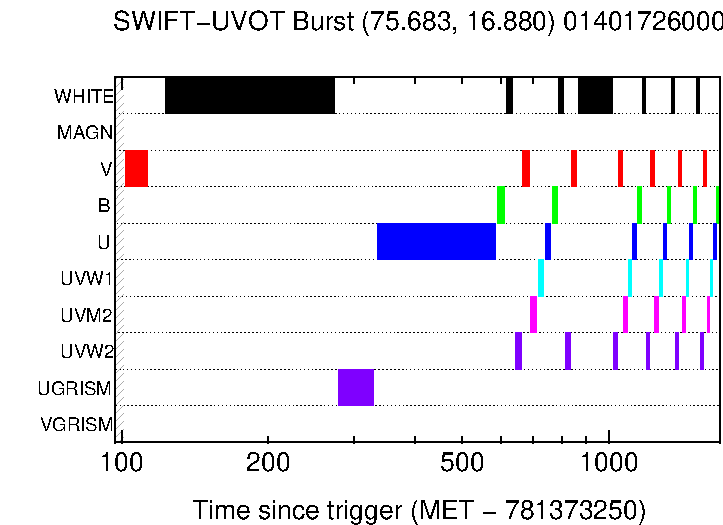 GRB 051117B | 00164279_uvseq | 05h 40m 43.37s | -19° 16′ 27.2′′ | 2.1 | Enhanced |