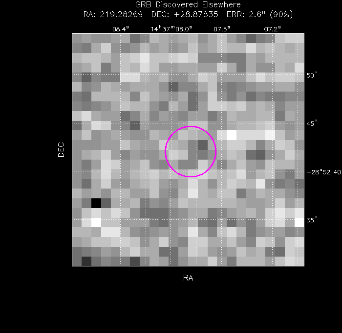 Related pages: Burst Analyser | Enhanced position | Light curve | Spectrum | Image | XRT Catalogue entry | Download obs data | BAT analysis | GCN Notices | GCN Circulars