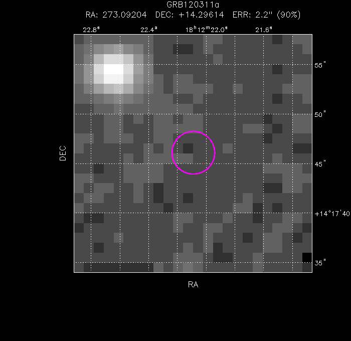 Related pages: Burst Analyser | Enhanced position | Light curve | Spectrum | Image | XRT Catalogue entry | Download obs data | BAT analysis | GCN Notices | GCN Circulars
