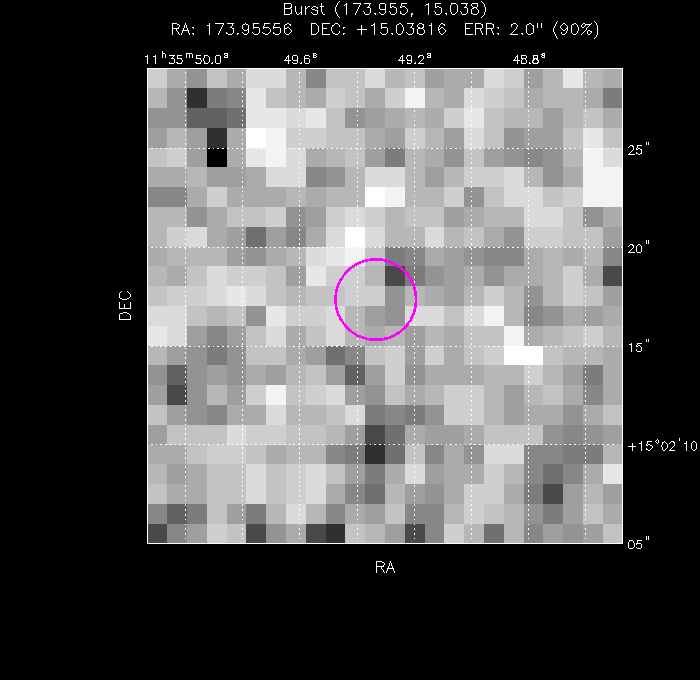 Related pages: Burst Analyser | Enhanced position | Light curve | Spectrum | Image | XRT Catalogue entry | Download obs data | BAT analysis | GCN Notices | GCN Circulars