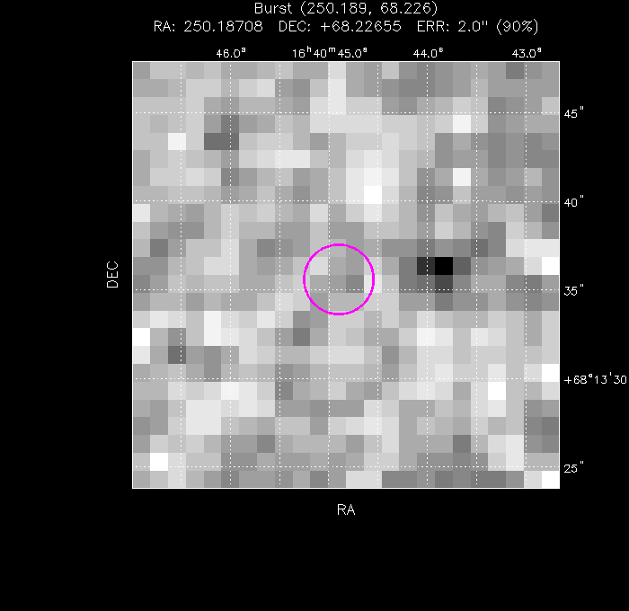 Related pages: Burst Analyser | Enhanced position | Light curve | Spectrum | Image | XRT Catalogue entry | Download obs data | BAT analysis | GCN Notices | GCN Circulars