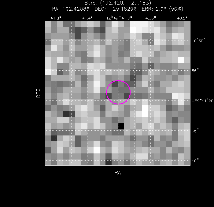 Related pages: Burst Analyser | Enhanced position | Light curve | Spectrum | Image | XRT Catalogue entry | Download obs data | BAT analysis | GCN Notices | GCN Circulars