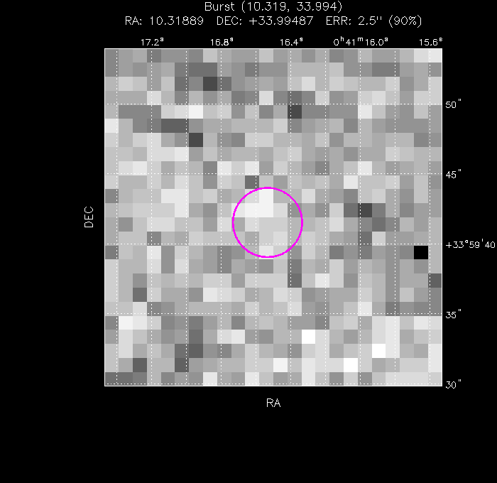 Related pages: Burst Analyser | Enhanced position | Light curve | Spectrum | Image | XRT Catalogue entry | Download obs data | BAT analysis | GCN Notices | GCN Circulars