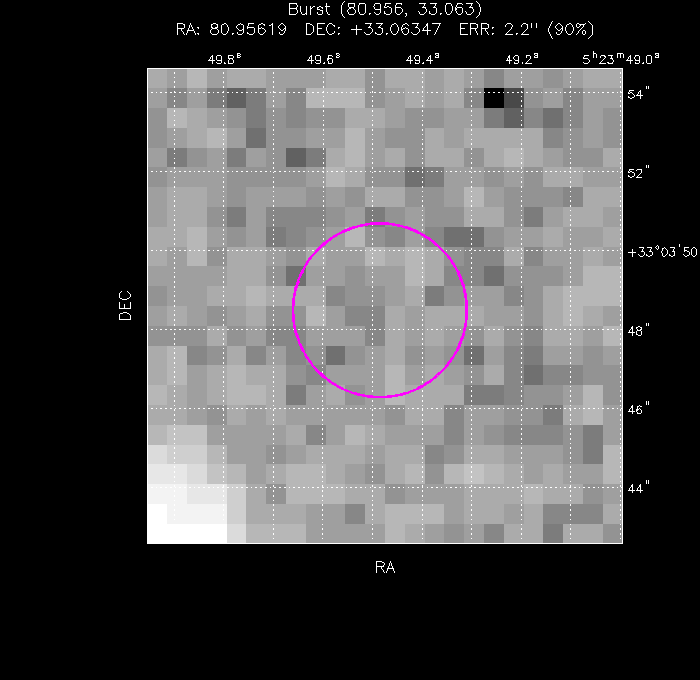 Related pages: Burst Analyser | Enhanced position | Light curve | Spectrum | Image | XRT Catalogue entry | Download obs data | BAT analysis | GCN Notices | GCN Circulars